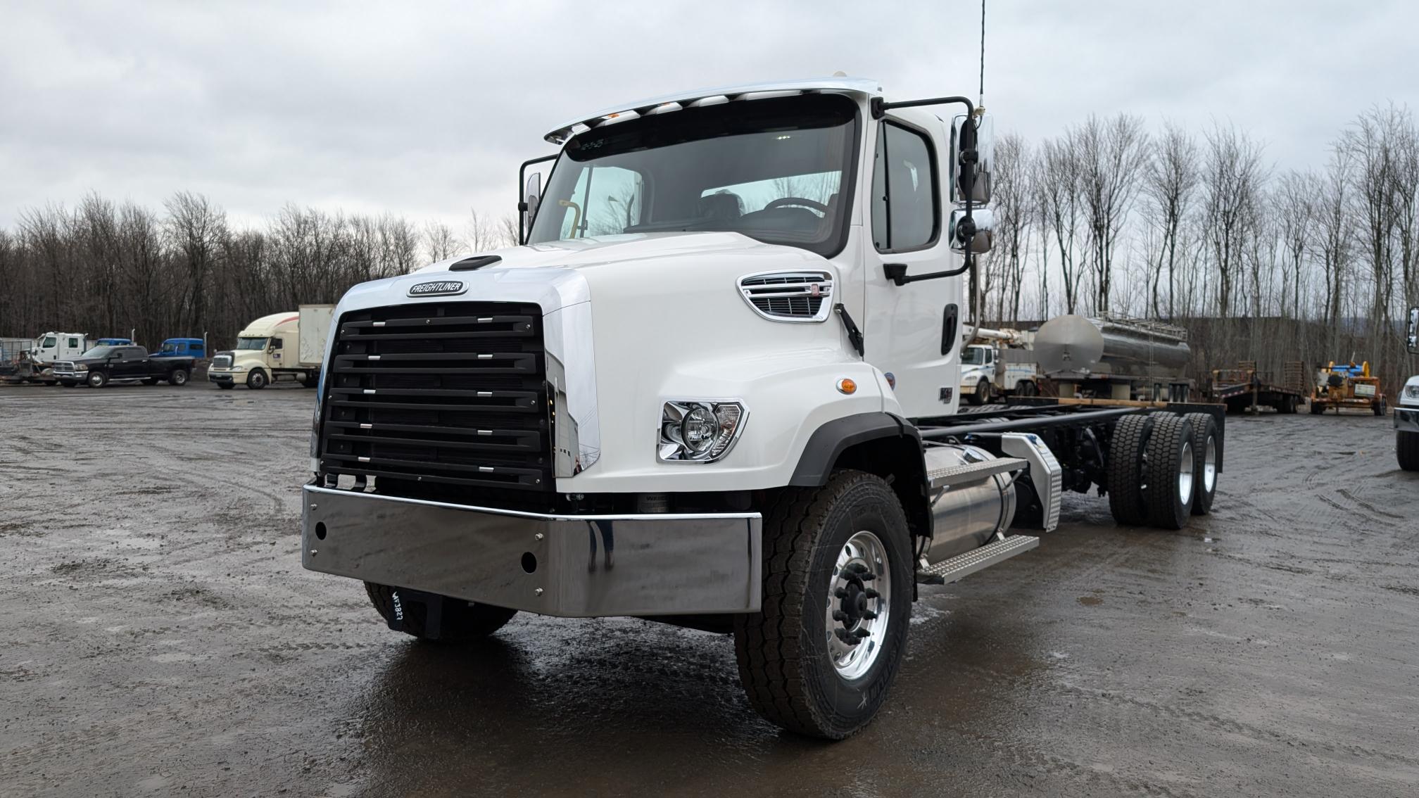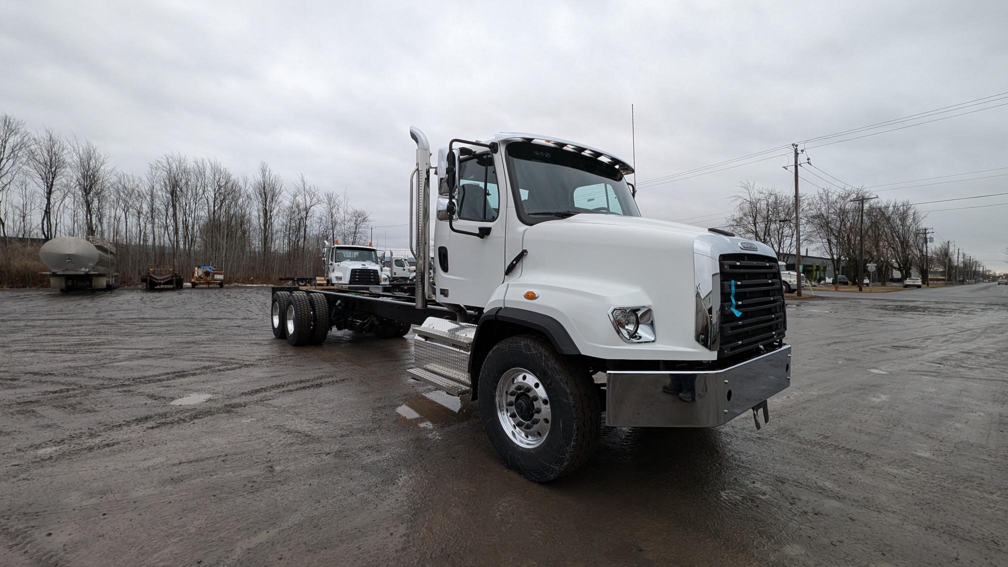 2026 Freightliner 114SD Plus, moteur Cummins X12 (370 hp, 1 250 LB/FT), transmission automatique Allison 3000RDS, prêt pour l’installation d’un PTO, freins à tambour, différentiels full lock, réservoir à carburant 120 gallons, 10 roues en aluminium avec pneus Michelin. Camions prêts à recevoir vos équipements! N’hésitez pas à communiquer avec un de nos conseillers aux ventes pour plus d’informations.