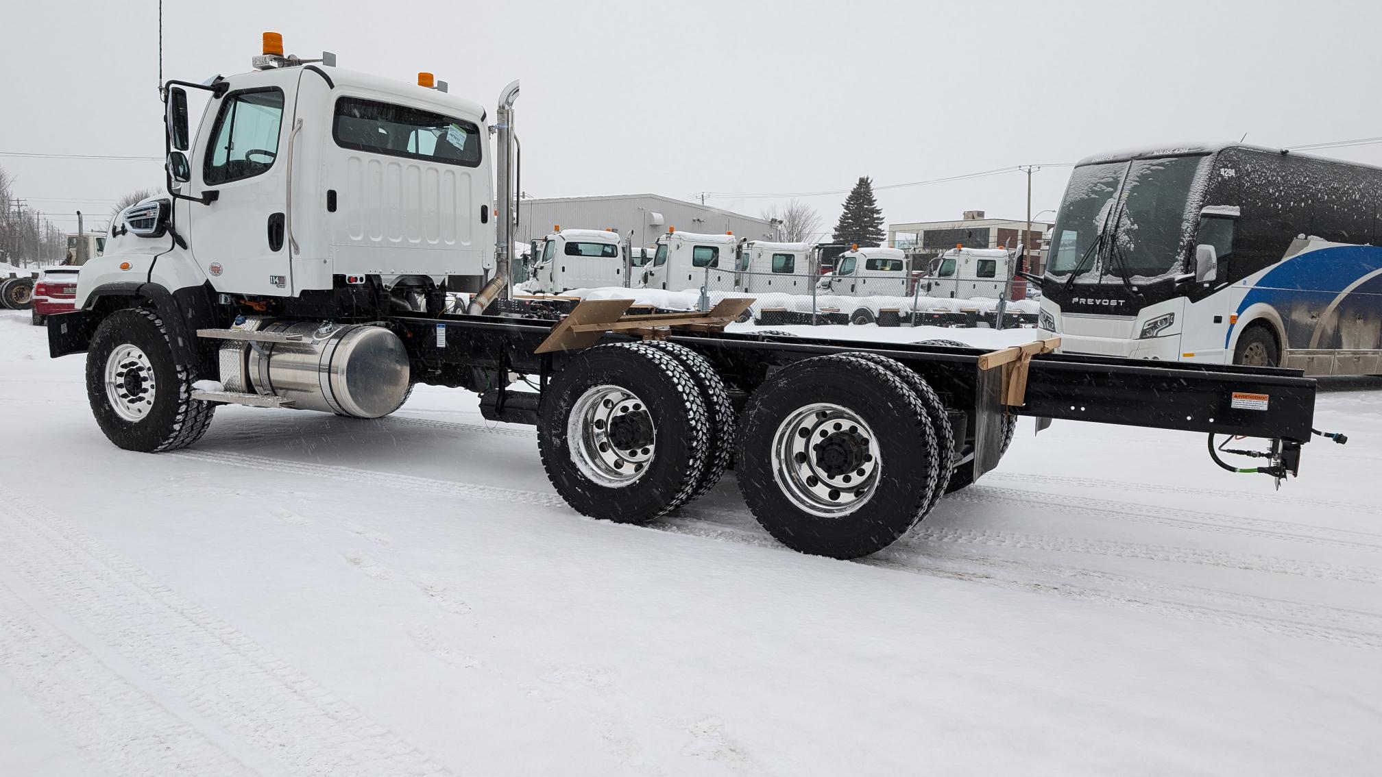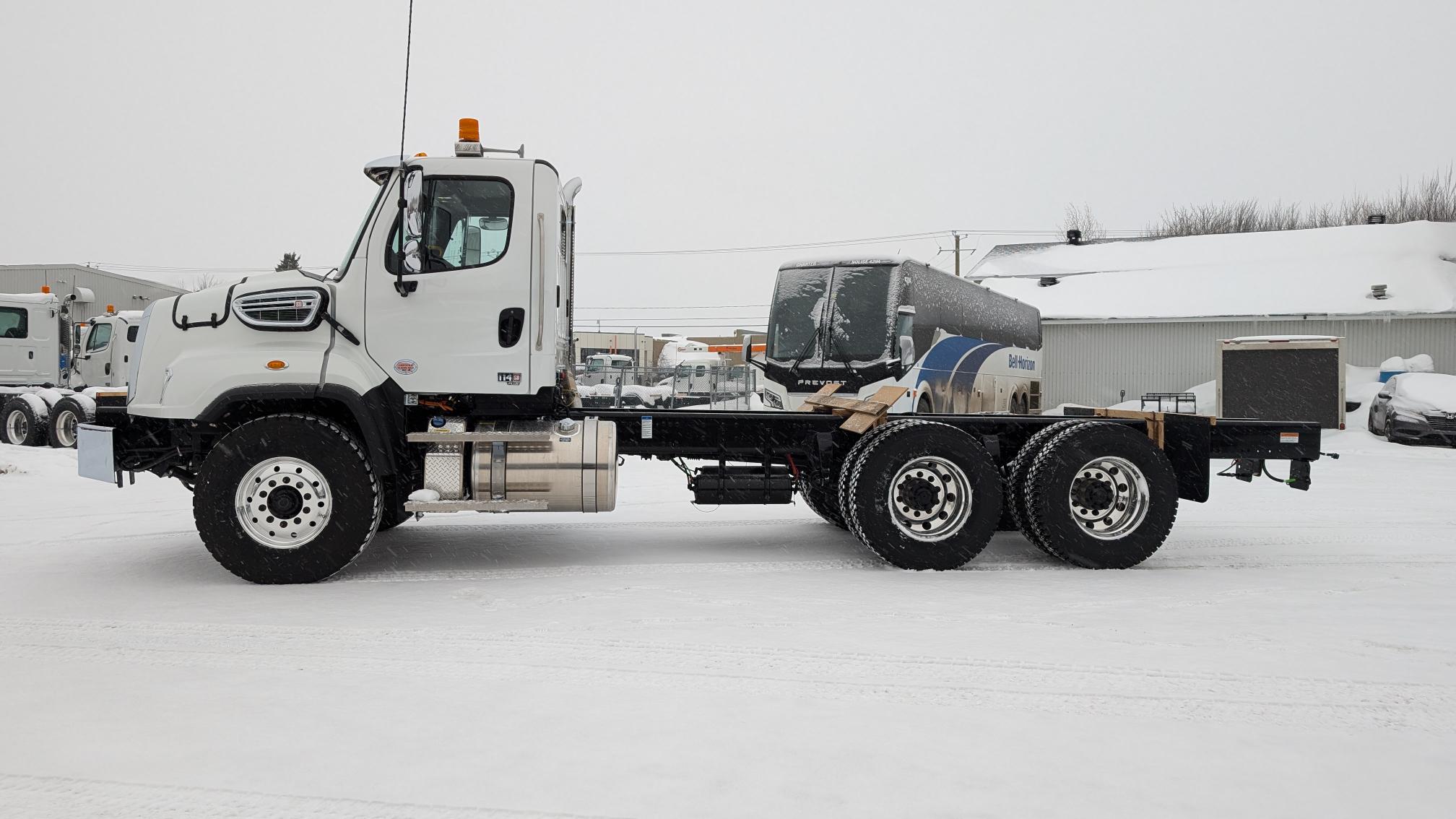 **** 2 UNITÉS EN INVENTAIRE **** 2026 Freightliner 114SD Plus, moteur Cummins X12 (370 hp, 1 250 LB/FT), transmission automatique Allison 3000RDS, prêt pour l’installation de 2 PTO, différentiels full lock, réservoir à carburant 80 gallons, pare-brise chauffant, 10 roues en aluminium avec pneus Michelin. Prêt à recevoir vos équipements! N’hésitez pas à communiquer avec un de nos représentants aux ventes pour plus d’informations.