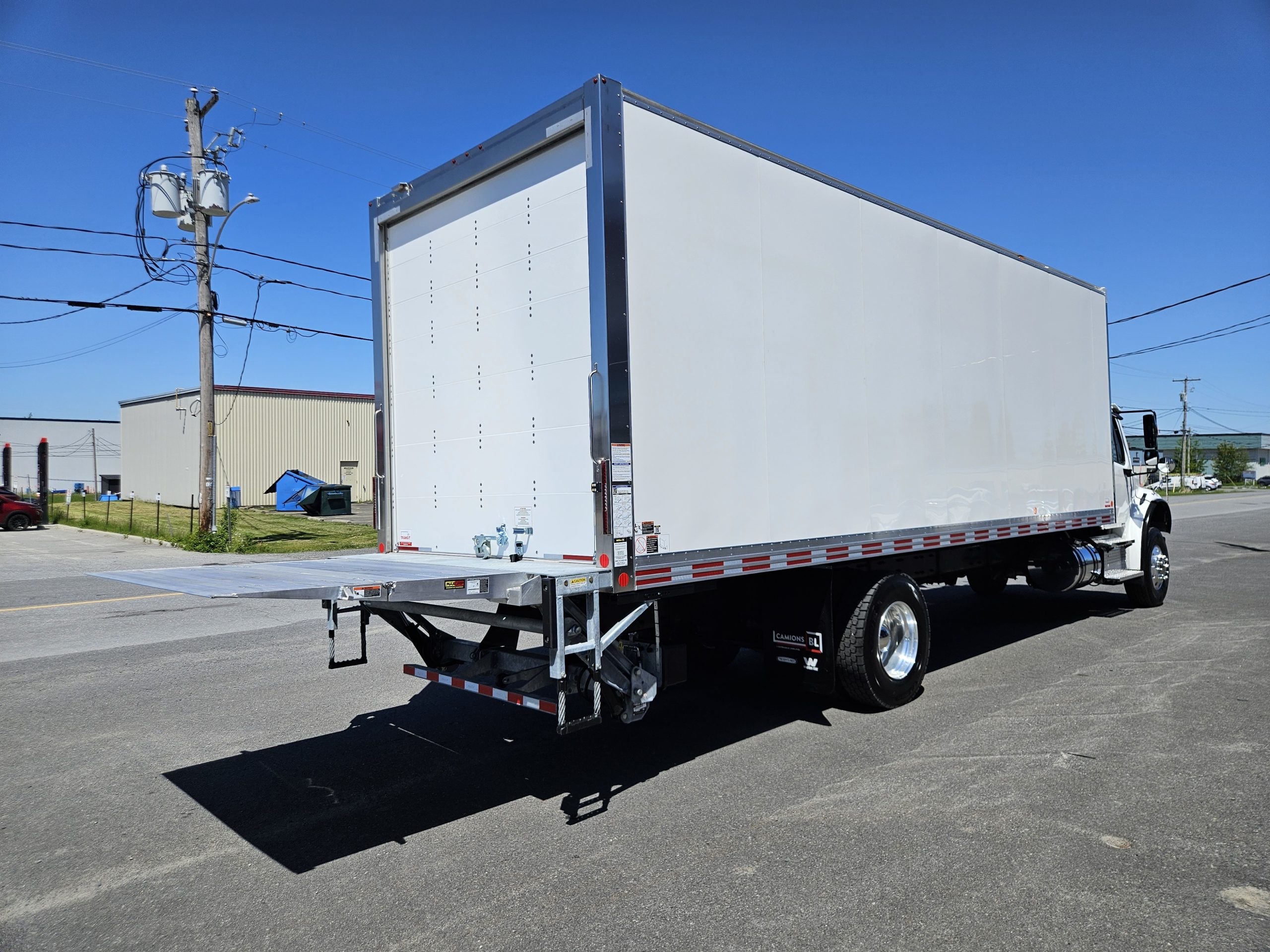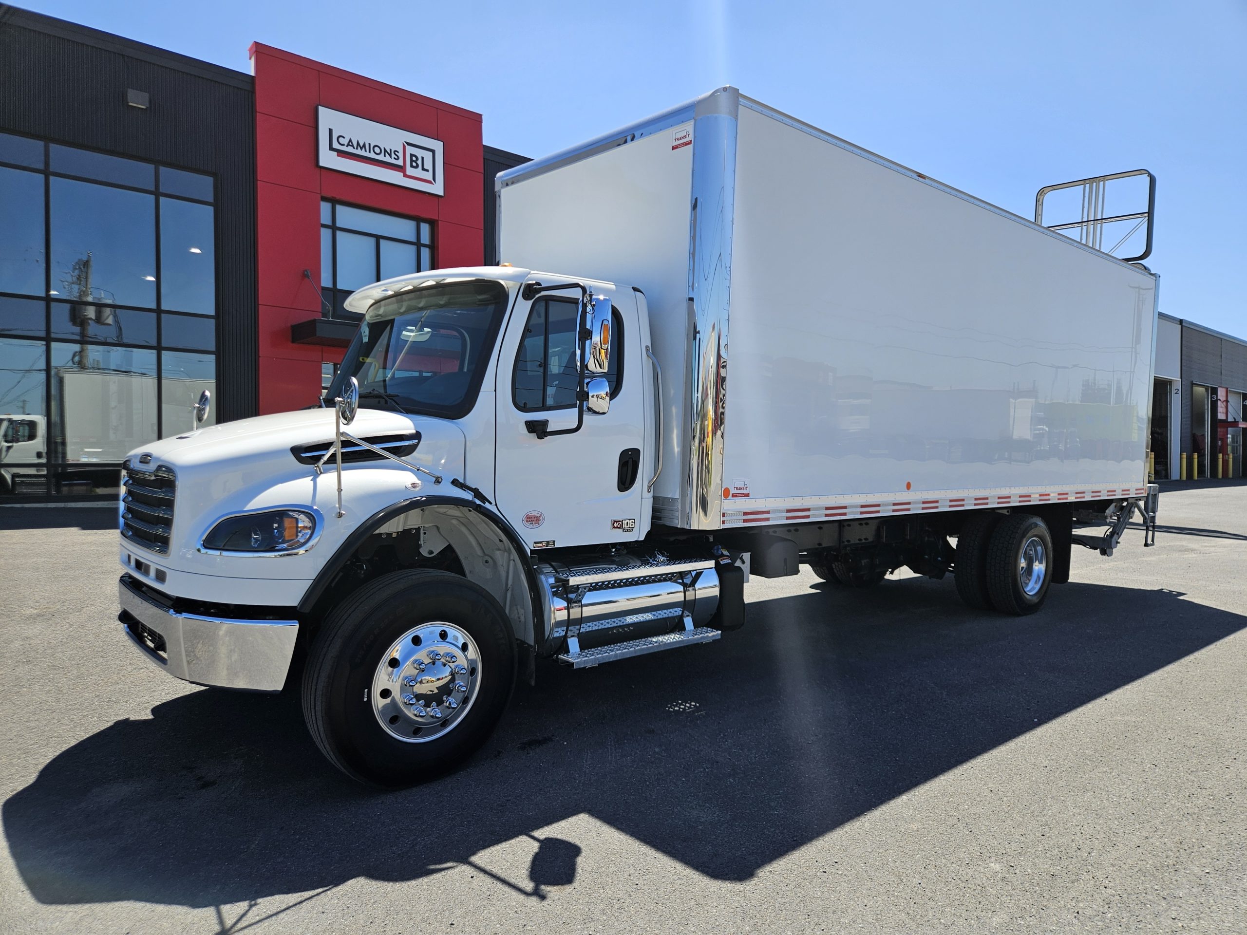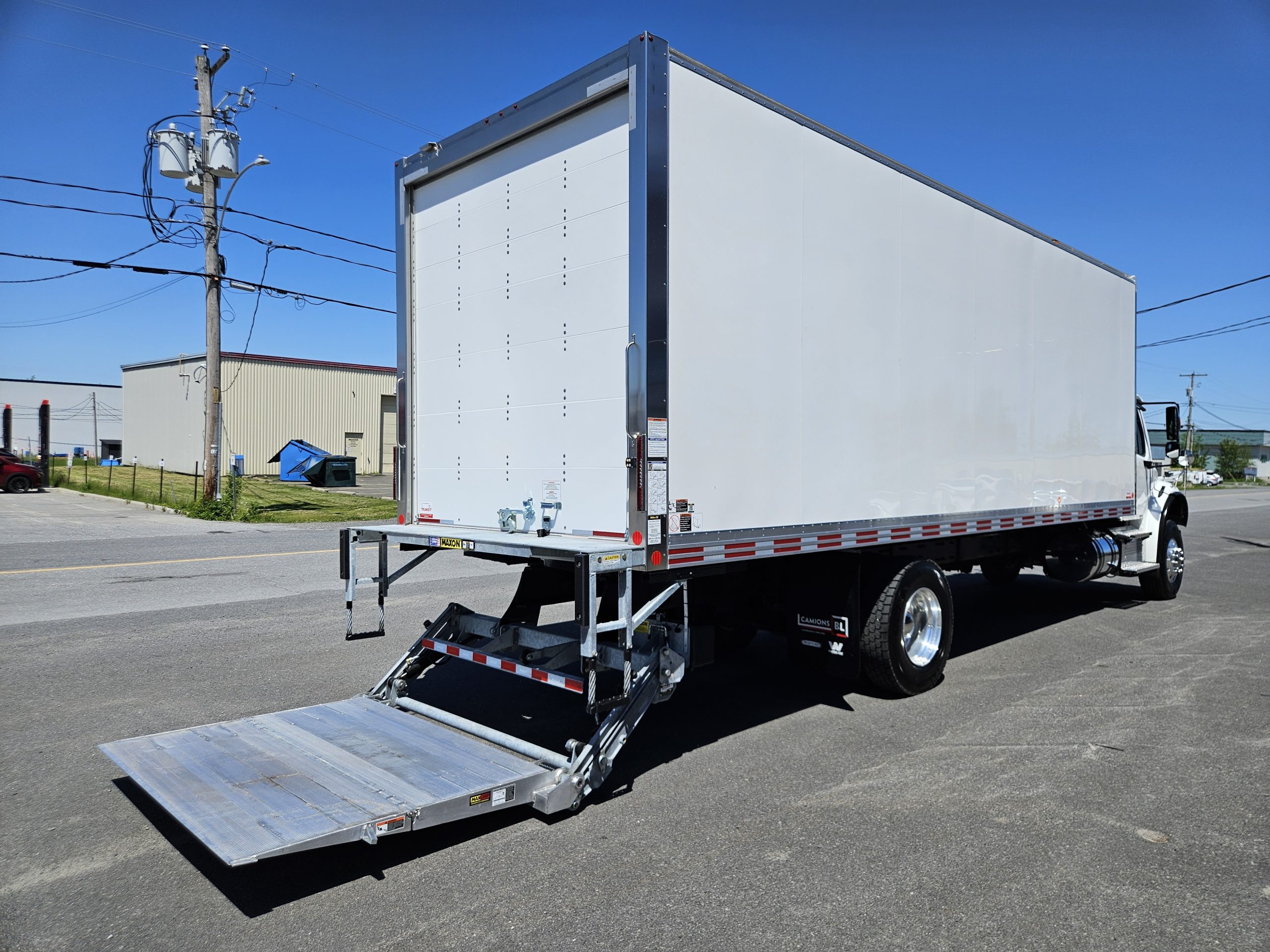 2026 Freightliner M2106 Plus, moteur Detroit Diesel DD8 (350 hp, 1 050 LB/FT), transmission automatique Allison 3000RDS, équipé pour installation d’un PTO, chauffe-moteur Espar, freins à tambour, 2 réservoirs à carburant (50 & 100 gallons), 6 roues en aluminium avec pneus Michelin. Ce camion est équipé d’une boite Fourgons Transit Classik 26 pieds et d’un monte-charge Maxon GPTB-3 (capacité de 3 000 lbs). N’hésitez pas à communiquer avec un de nos conseillers aux ventes pour plus d’informations.