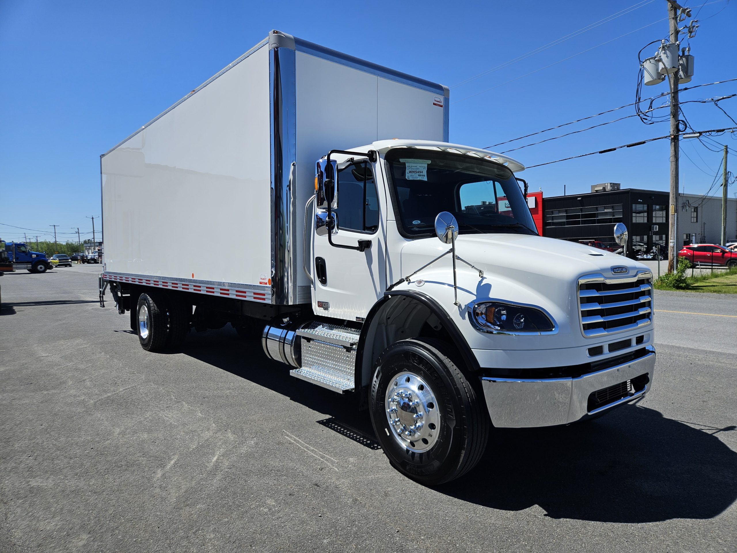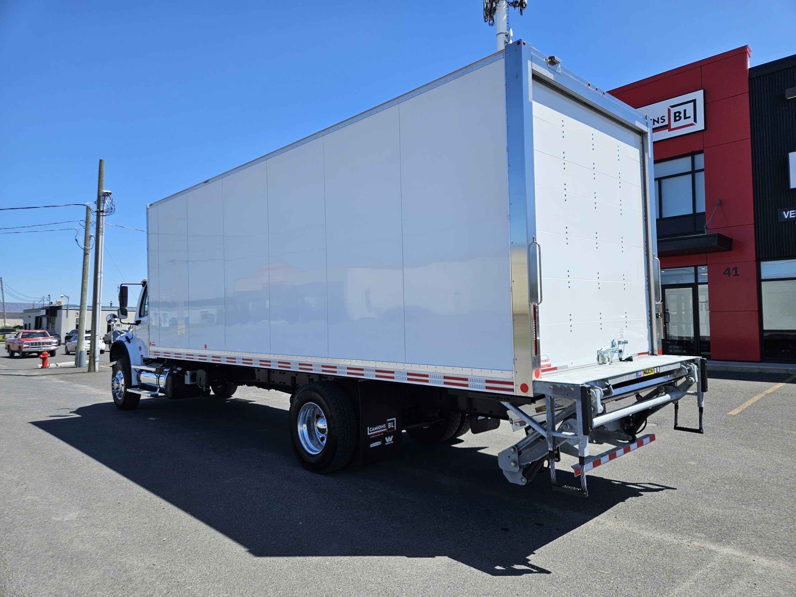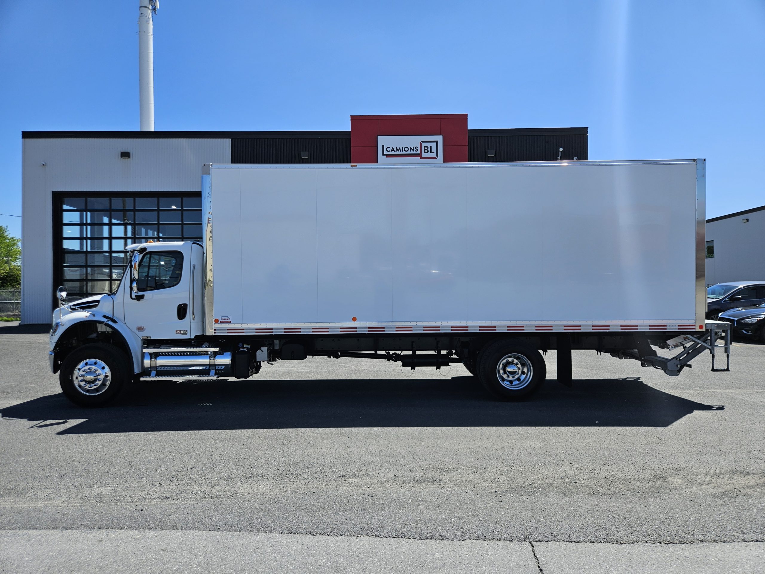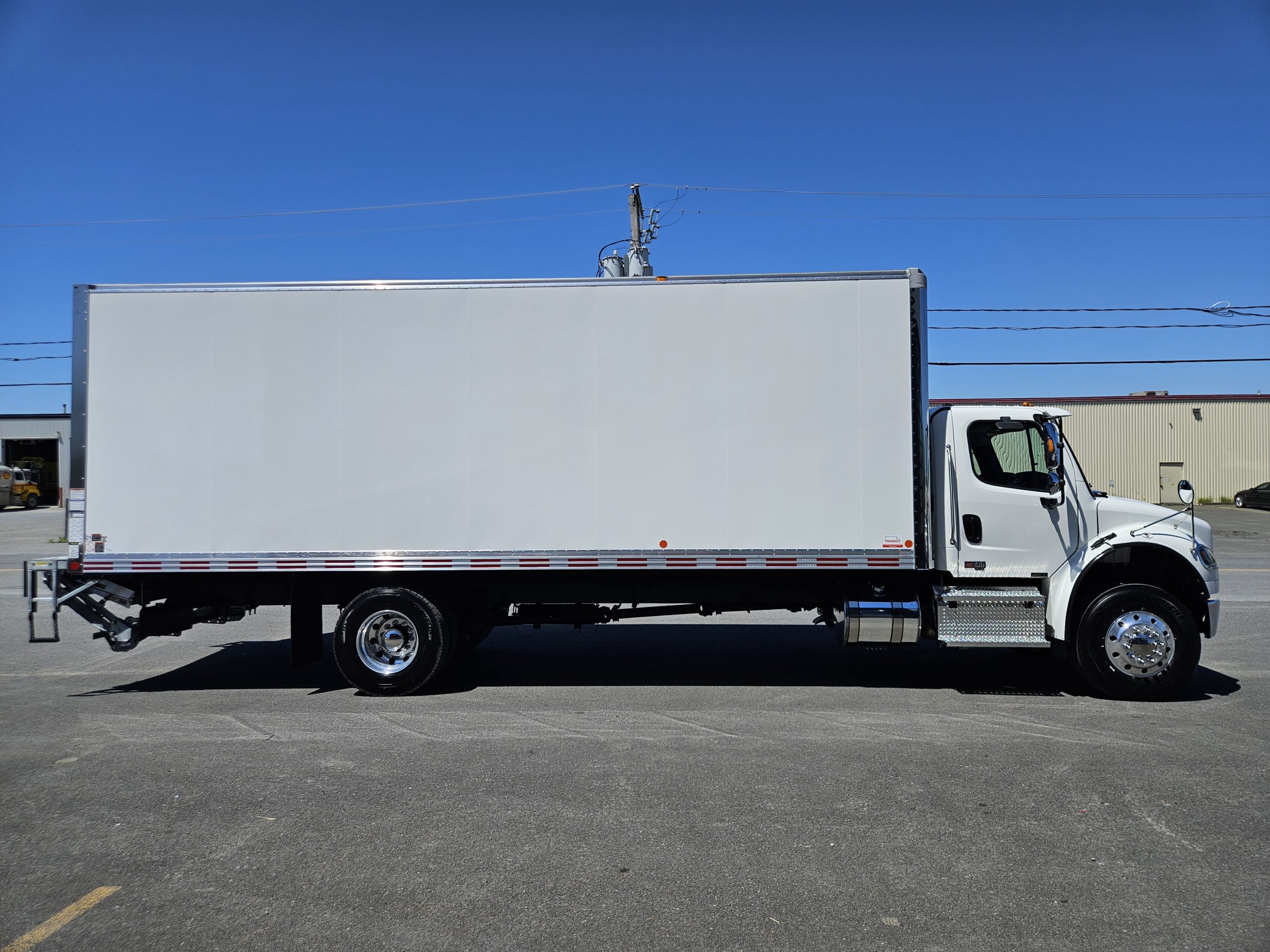 2026 Freightliner M2106 Plus, moteur Detroit Diesel DD8 (350 hp, 1 050 LB/FT), transmission automatique Allison 3000RDS, équipé pour installation d’un PTO, chauffe-moteur Espar, freins à tambour, 2 réservoirs à carburant (50 & 100 gallons), 6 roues en aluminium avec pneus Michelin. Ce camion est équipé d’une boite Fourgons Transit Classik 26 pieds et d’un monte-charge Maxon GPTB-3 (capacité de 3 000 lbs). N’hésitez pas à communiquer avec un de nos conseillers aux ventes pour plus d’informations.