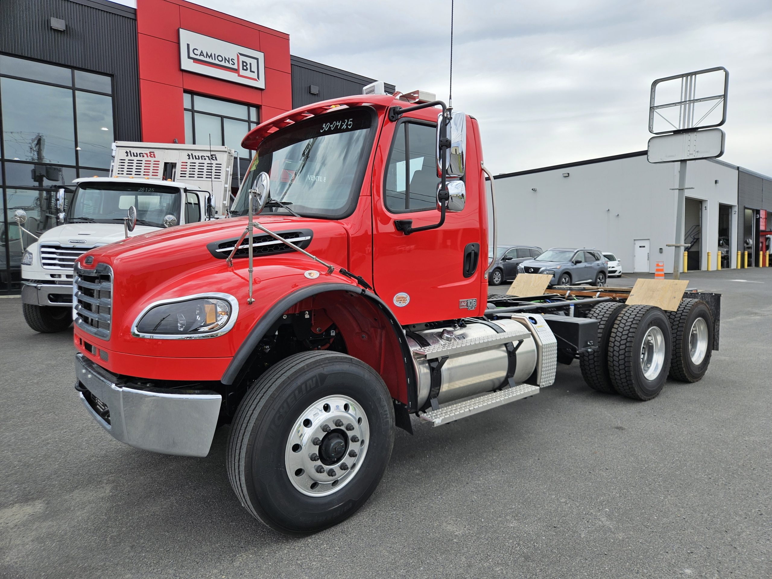 2026 Freightliner M2106 Plus, moteur Detroit Diesel DD8 (350 hp, 1 050 LB/FT), transmission automatique Allison 3000RDS, freins à tambour, réservoir à carburant 100 gallons, 10 roues en aluminium avec pneus Michelin, siège conducteur avec suspension à air, siège passager fixe. Ce camion sera équipé sous peu d’une benne basculante Lagacé et frère LF400 15,5 pieds, pouvant être modifiée selon vos besoins. N’hésitez pas à communiquer avec un de nos conseillers aux ventes pour plus d’informations.